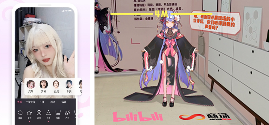 基于商汤SenseMARS火星混合现实平台世界领先的面部检测和驱动、宠物面部检测等技术,为bilibili的直播、短视频业务提供AR特效解决方案,包含美颜、美妆、贴纸、滤镜、Avatar等多种实时特效功能,给C端用户带去更加生动、有趣的虚实交互体验,同时助力直播/短视频平台增强用户粘性,共同打造年轻世代高度聚集的文化社区和视频平台。